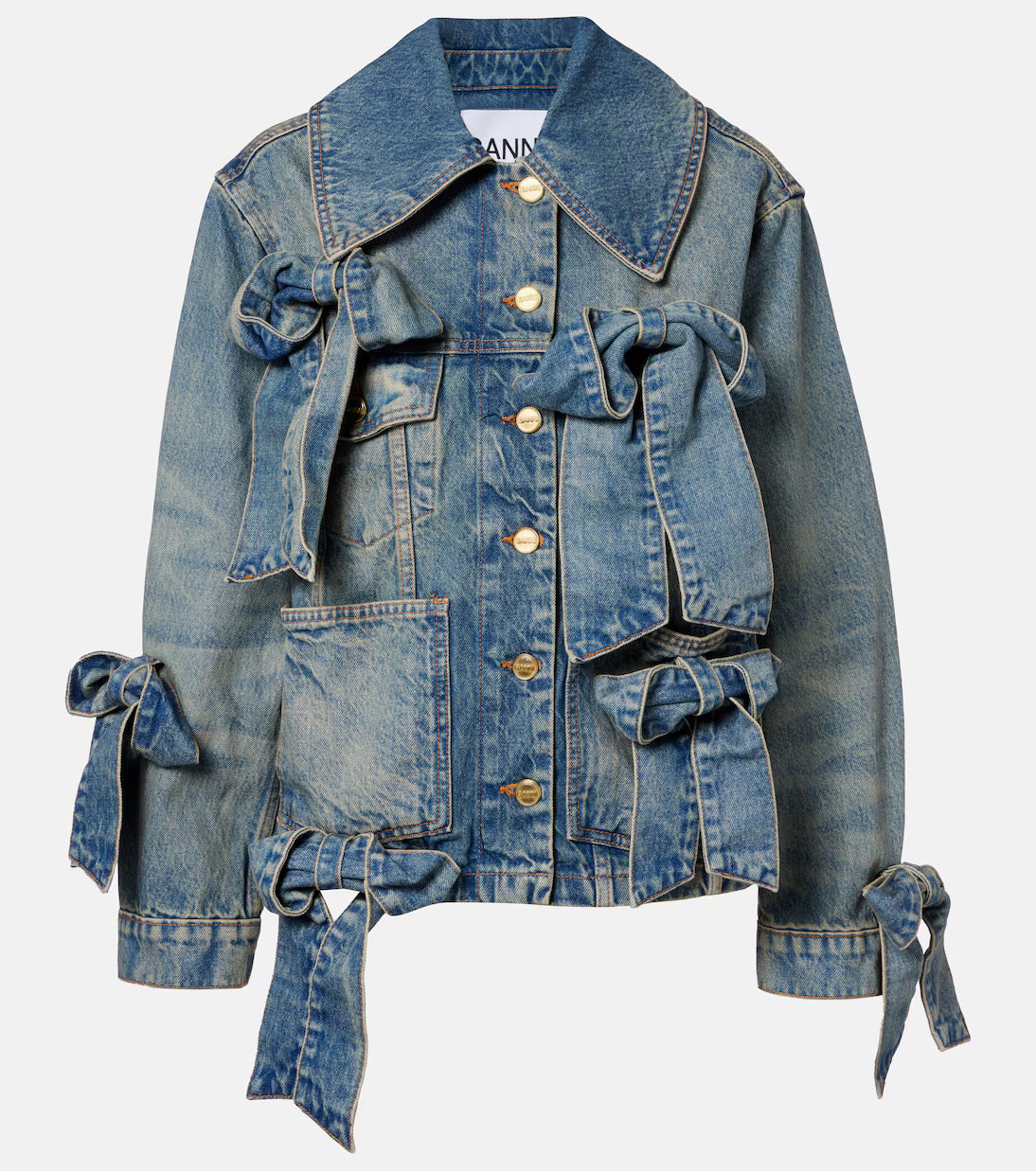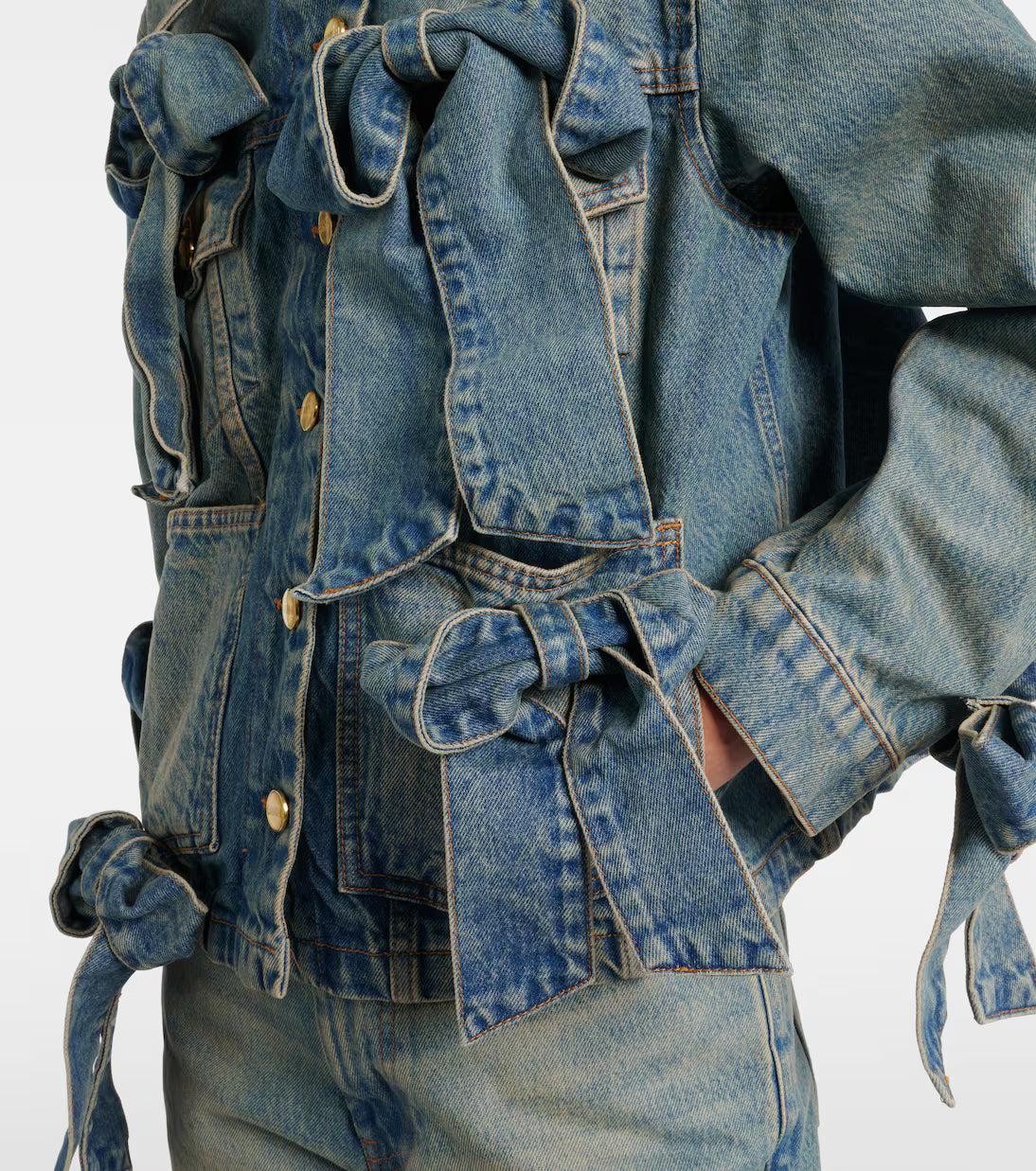 Denim jacket with bow decoration