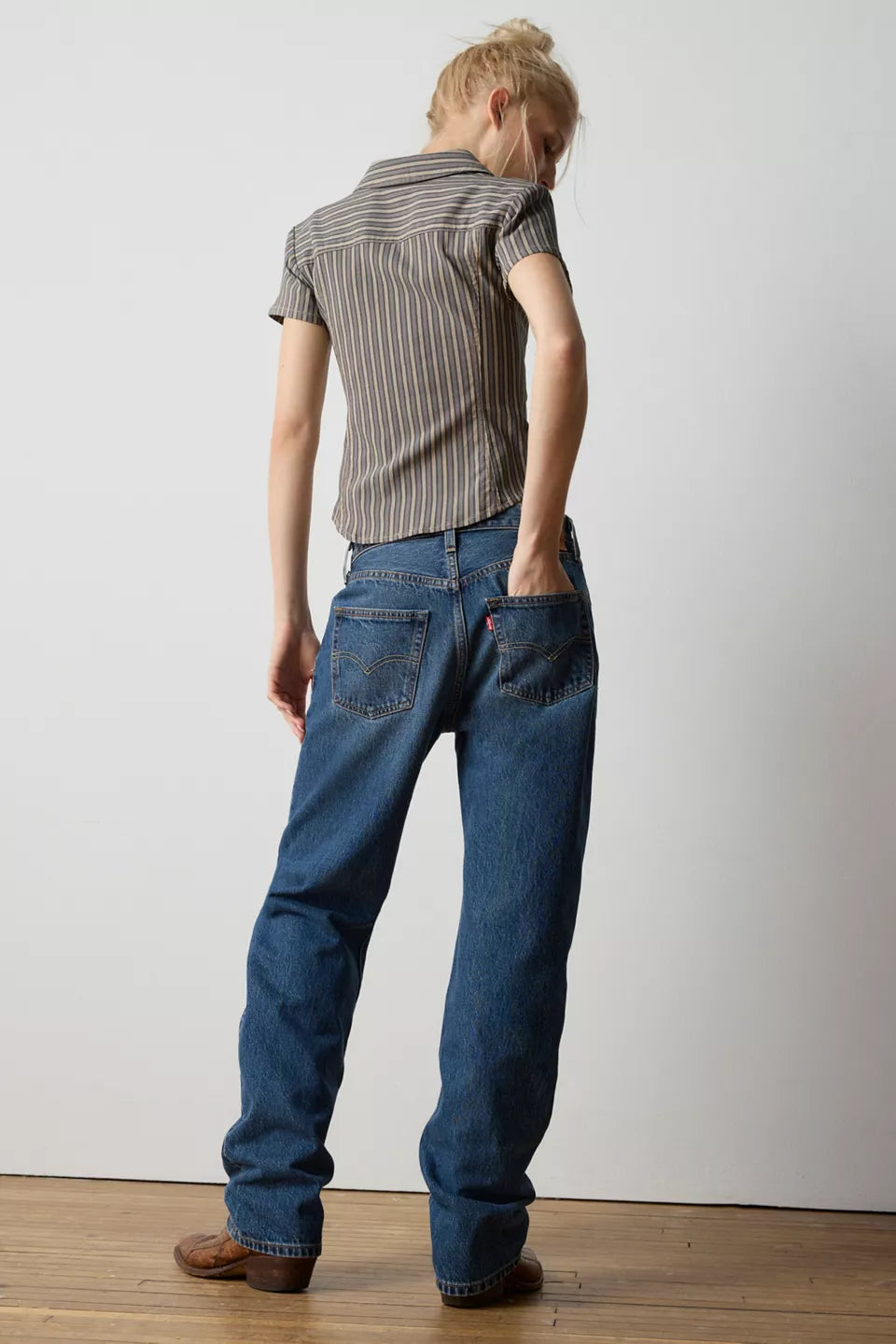 501 '90s style light wash straight leg jeans designed for classic comfort and timeless fashion.