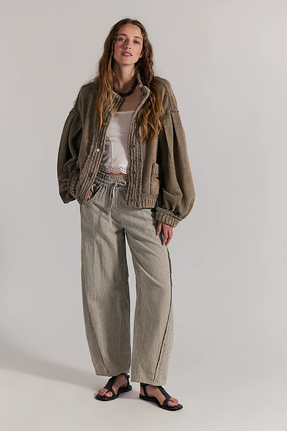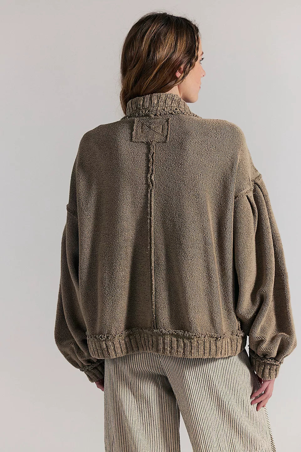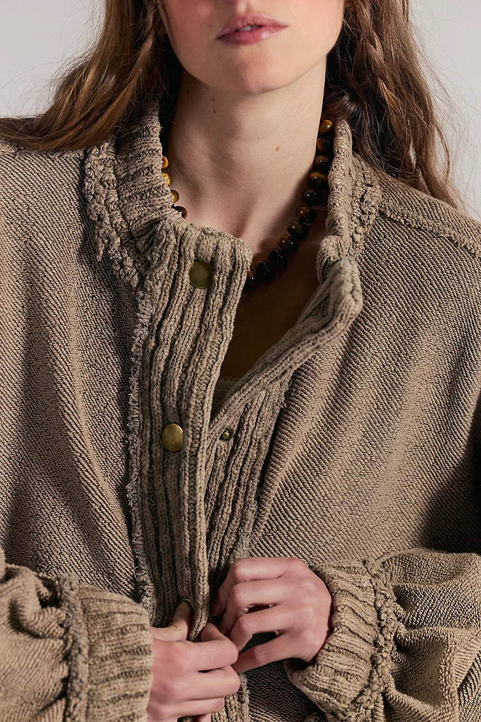 Cozy and classic, this cardi features a soft terry fabrication and a slouchy silhouette with billowy drop-shoulder sleeves and front patch pockets. The ribbed knit trim adds a refined touch, making it the perfect cozy layer for cooler days.