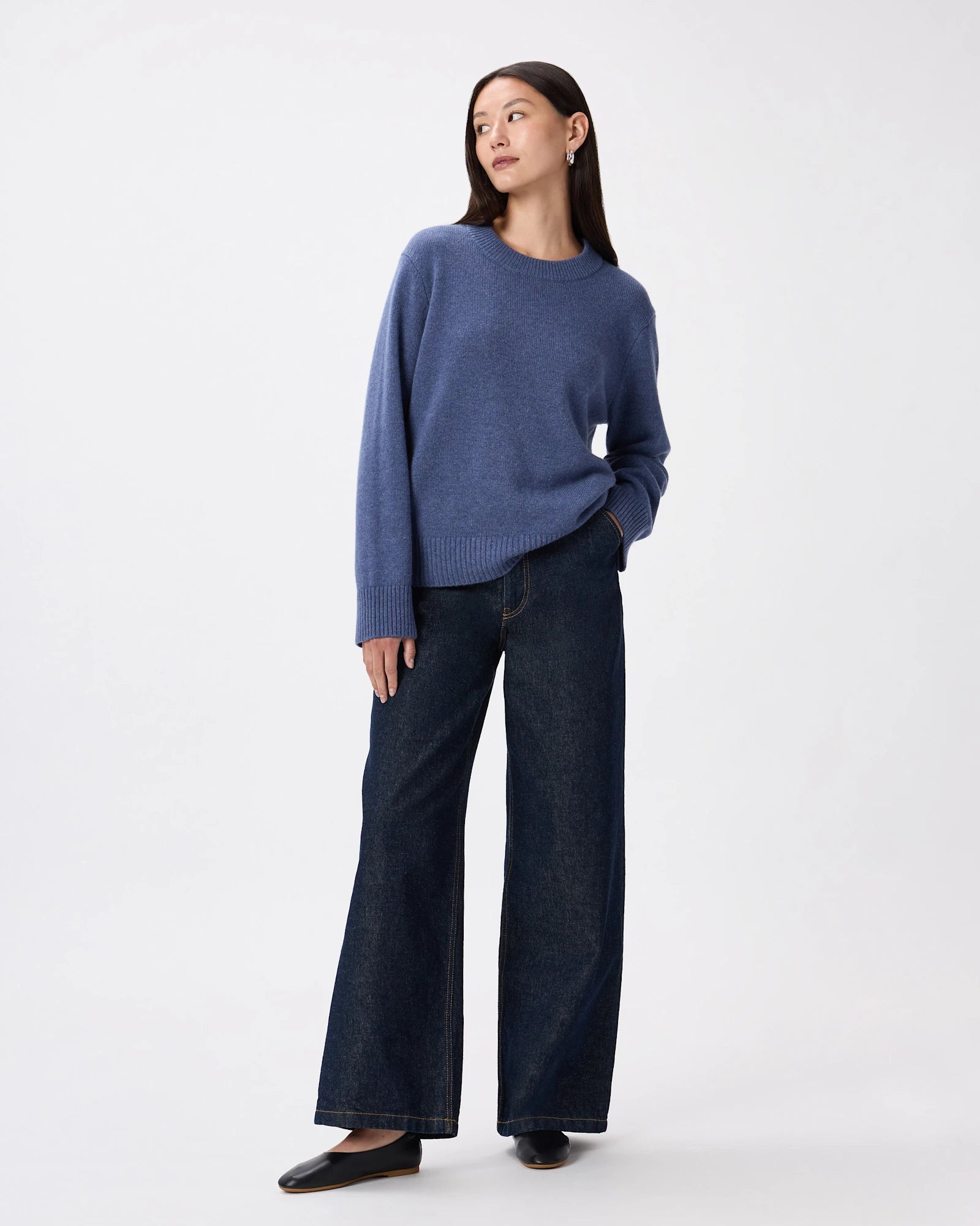 The wide-ribbed neckline and cuffs add refinement, making it the perfect versatile layer for any season.