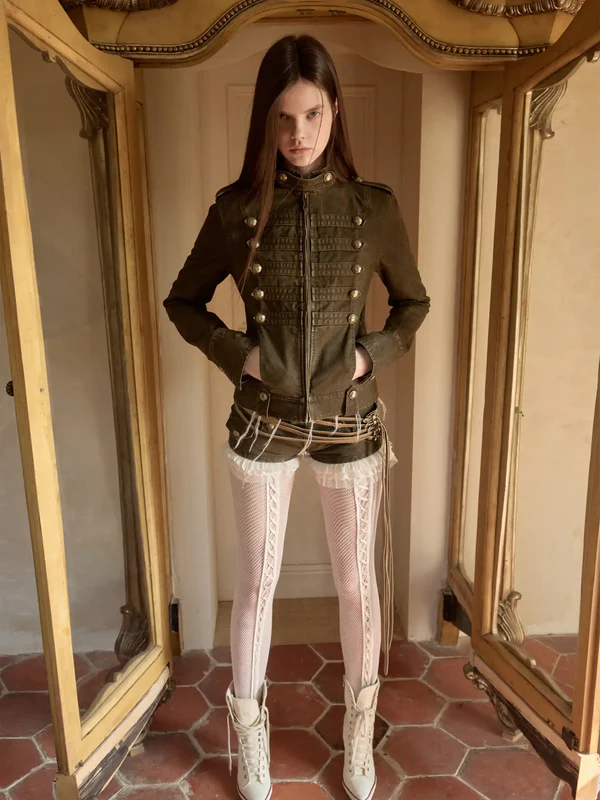 • Napoleon-inspired double-breasted design for a bold military silhouette