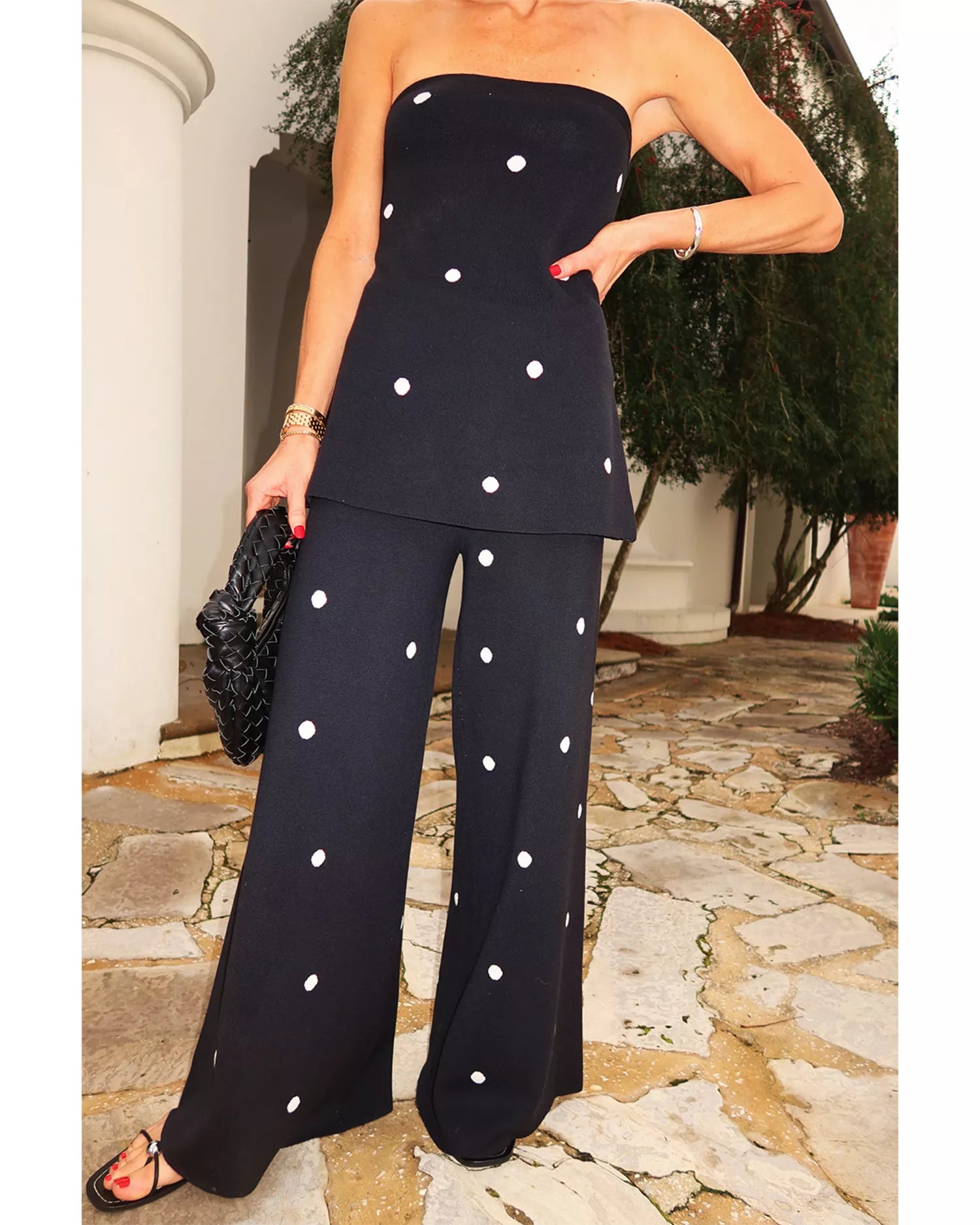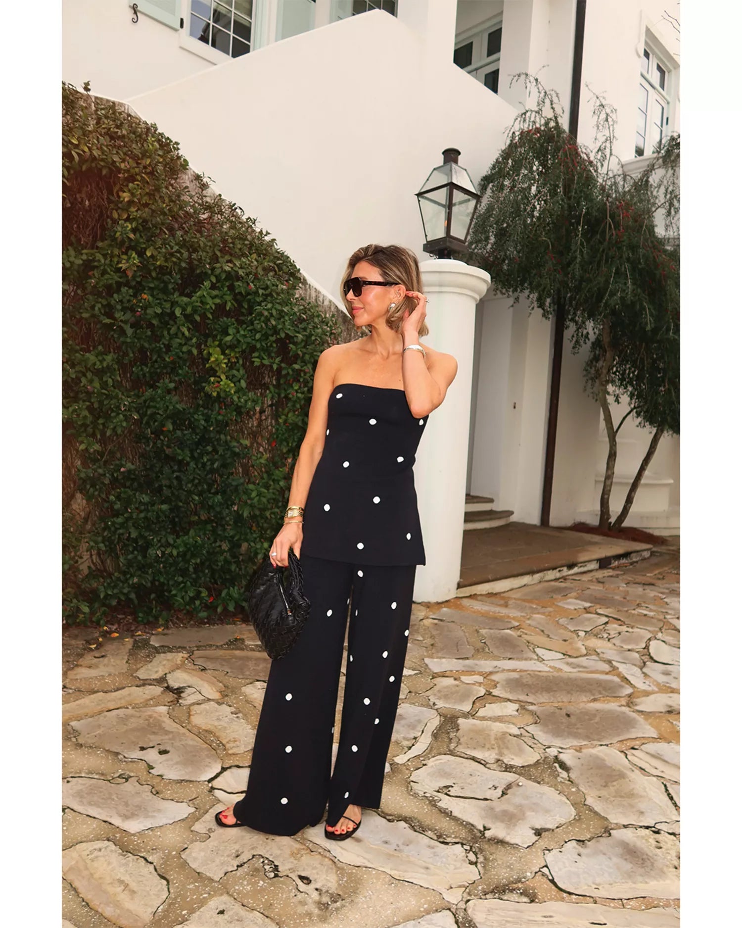 The print of the moment. These wide leg polka dot pants balance a lightweight feel with polished structure. Soft, flattering, and eye-catching, they pair perfectly with the matching top or slip easily into your everyday rotation.