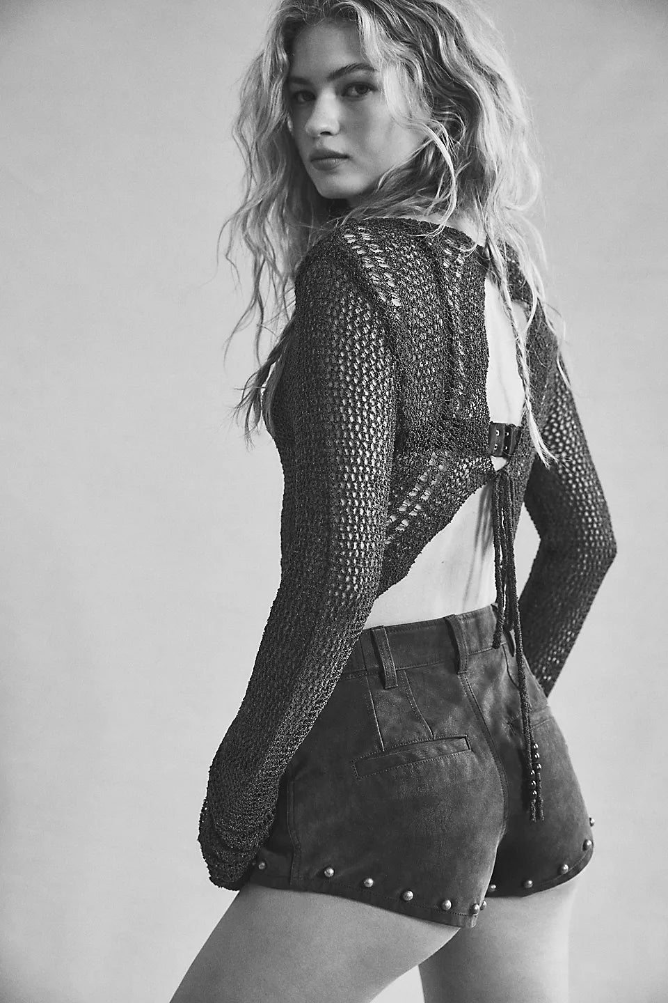 These Western-inspired shorts from the We The Free collection exude timeless charm with a hint of rebellious flair. The low-rise, micro mini fit flatters the figure, while studded embellishments and grommets at the waistband add an edgy touch.