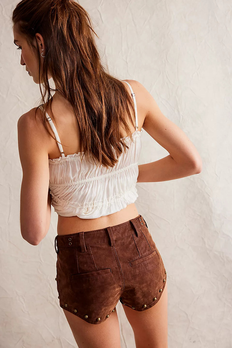 Crafted from soft vegan suede, these shorts are designed to turn heads with every wear, effortlessly pairing with cowboy boots or sporty sneakers for endless styling options.