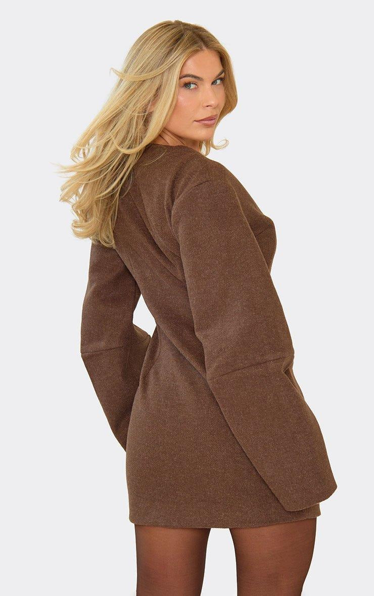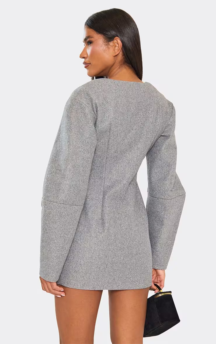 Gray Wool Puff-Sleeve Button-Front Blazer Dress