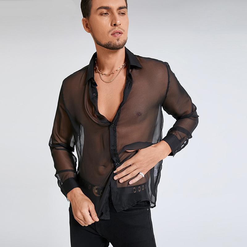 Men's Fashion Casual See-Through Button-Up Shirt