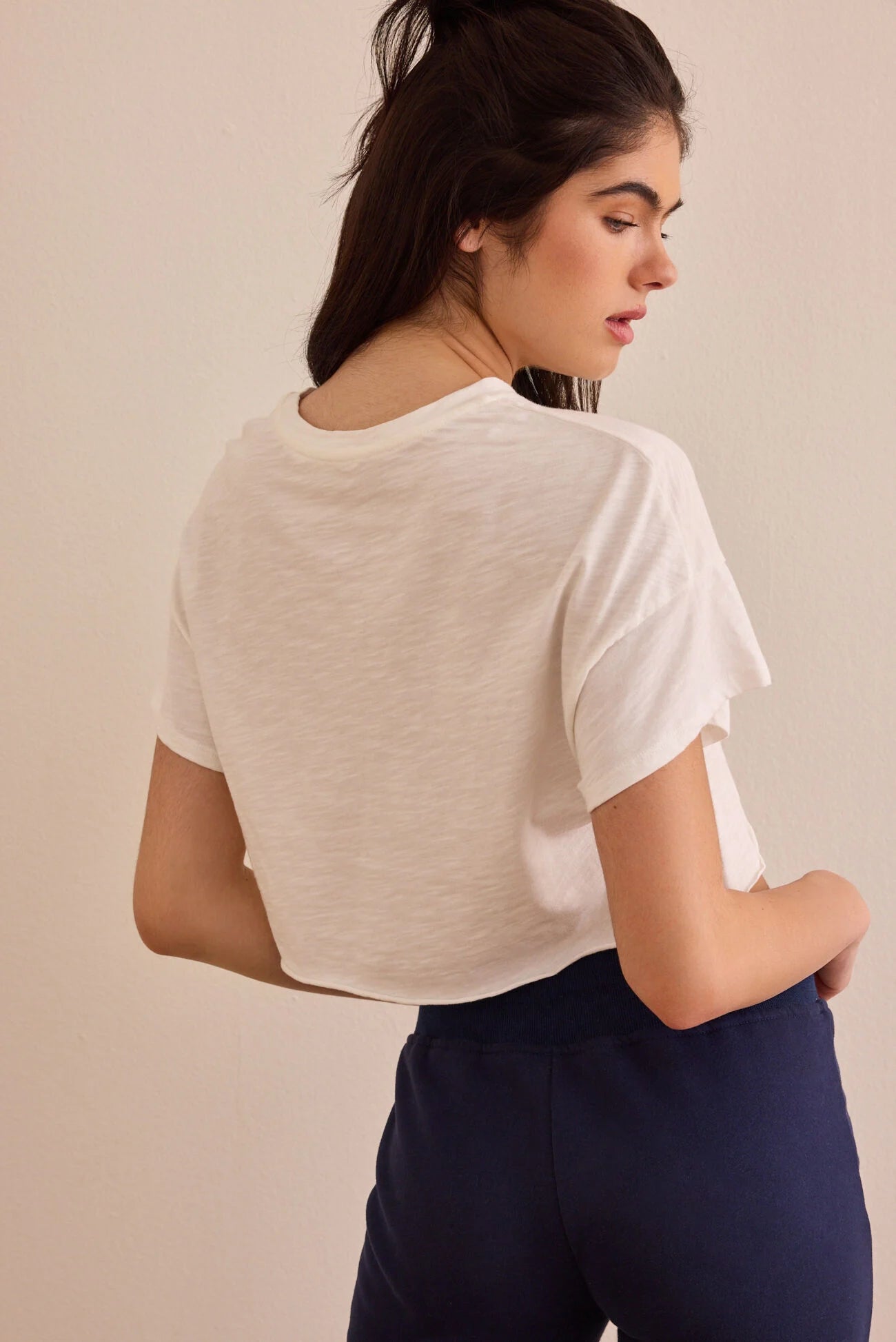 The USA Cropped T-Shirt brings effortless sporty energy with a relaxed, easy-to-wear silhouette. Lightweight cotton keeps it breathable and comfortable for everyday wear.